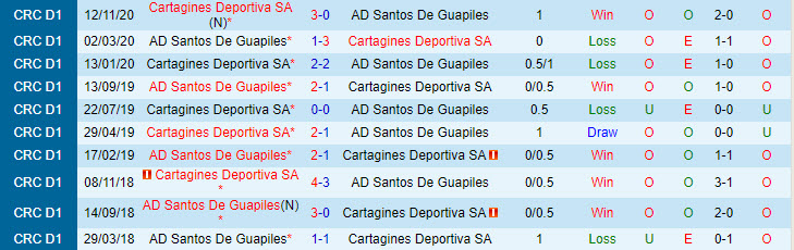 + Lịch sử đối đầu Cartagines vs Santos Guapiles