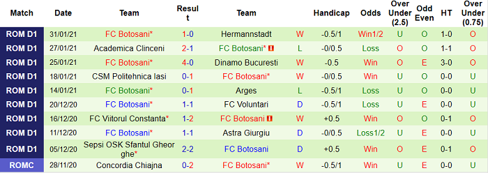 - Thống kê 10 trận gần nhất của Botosani