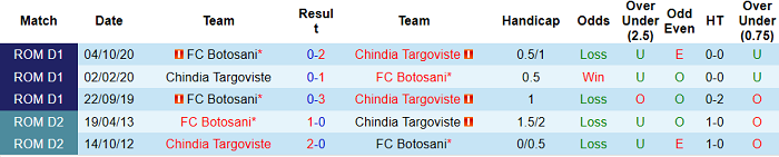 Phong độ và thống kê đối đầu Chindia Targoviste - Botosani
