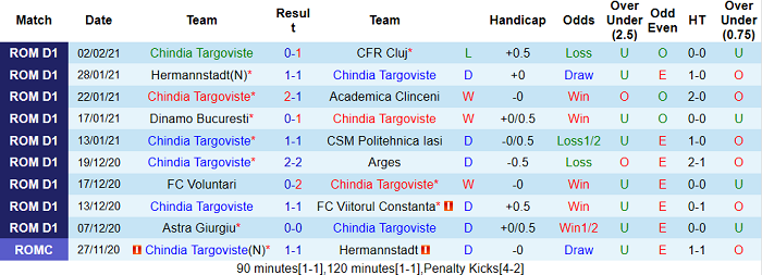 - Thống kê 10 trận gần nhất của Chindia Targoviste