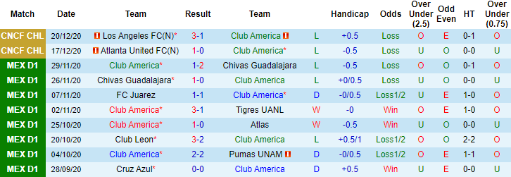 Club America liên tục gây thất vọng giai đoạn gần đây. 5 trận vừa qua tính trên mọi đấu trường, Club America thua 4, hòa 1 và toàn thua theo kèo châu Á. Dẫu vậy ở trận ra quân ở giai đoạn 2 giải VĐQG Mexico 2020/21, Club America vẫn hứa hẹn có được khởi đầu thuận lợi khi họ được gặp đối thủ yêu thích San Luis.