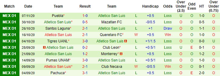 Hai trận đối đầu trước đó tại giải VĐQG Mexico, dù được chơi trên sân nhà San Luis vẫn phải tay trắng rời cuộc chơi. Lần tái đấu sắp tới phải chơi trên sân khách, San Luis càng khó vớt vát được niềm tin nơi người hâm mộ. 6 trận xa nhà gần đây trong khuôn khổ giải VĐQG Mexico, San Luis toàn thua, thủng lưới 14 lần.