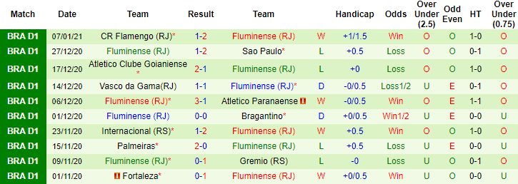 Trong khi đó bên phía đội khách, Fluminense giai đoạn gần đây phải đối mặt với những khó khăn lớn về lực lượng, từ đó dẫn tới tình trạng phong độ sa sút. 4 vòng đấu vừa qua tại Serie A, Fluminense để mất điểm 3 lần (thua 2, hòa 1 và thua 3 trận theo kèo châu Á).