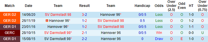 Darmstadt toàn thắng cả 4 trận đối đầu Hannover gần đây, xé lưới đối thủ từ 2 lần trở lên. 4 trận vừa qua tính trên mọi đấu trường, Darmstadt giành chiến thắng 3 lần cả về tỷ số lẫn kèo châu Á. Tuy nhiên ở lần tái đấu Hannover sắp tới, Darmstadt lại sớm bị nghi ngờ vào khả năng giành chiến thắng khi kèo châu Á trên sàn giao dịch chỉ dừng lại ở mức 0:0.