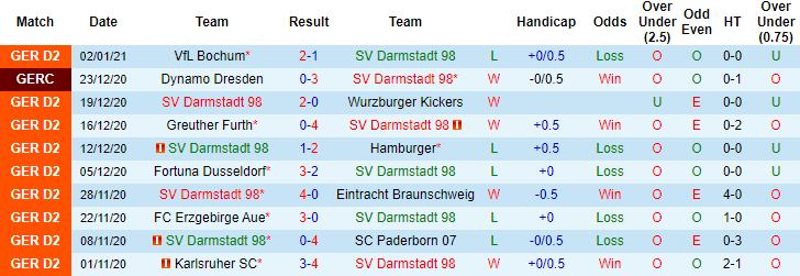 + Thống kê 10 trận gần nhất của Darmstadt
