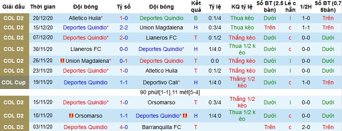 + Thống kê 10 trận gần nhất của Deportes Quindío