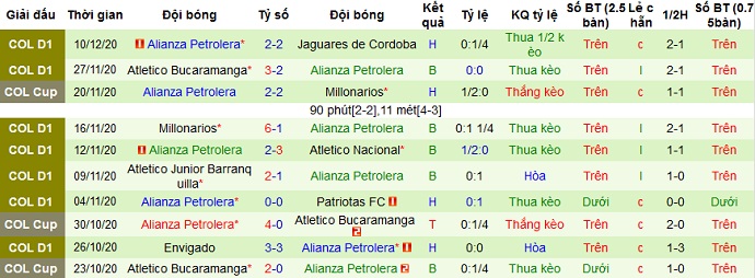 Đó cũng là trận thắng duy nhất của Alianza Petrolera trong 5 trận gần nhất. Còn lại đội bóng hòa 1 và để thua 3 trận. Thành tích sân khách của Alianza Petrolera còn tệ hơn nhiều khi ở 8 lần du đấu gần nhất họ chỉ có được 1 trận hòa, để thua trong cả 7 trận còn lại.