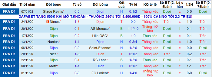 - Thống kê 10 trận gần nhất của Dijon