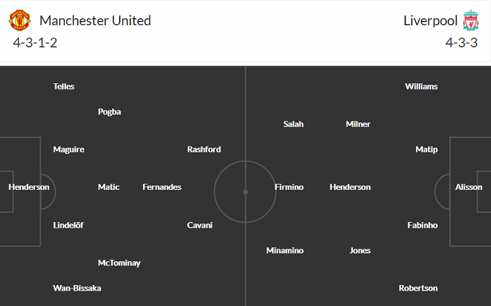 MU không có nhiều sự thiếu vắng đáng chú ý khi tái đấu Liverpool. Chỉ Phil Jones, Brandon Williams và Marcos Rojo là chưa thể ra sân. Dẫu vậy, 3 cầu thủ này từ lâu đã bị HLV Ole Gunnar Solskjaer gạt khỏi danh sách ưu tiên.