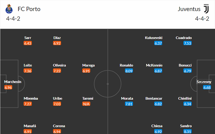 Đội hình dự kiến Porto vs Juventus