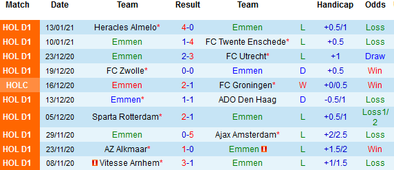 Trong trận đấu diễn ra hôm giữa tuần, Emmen tiếp tục để lại nỗi thất vọng lớn khi bị Heracles Almelo đè bẹp với tỷ số 0-4. Đó là trận thua thứ 2 liên tiếp kể từ đầu năm 2021 và đều bị chọc thủng lưới 4 bàn.