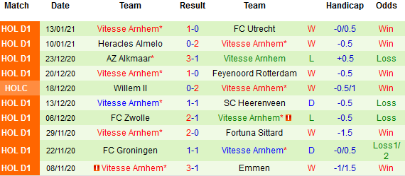 + Thống kê 10 trận gần nhất của Vitesse Arnhem