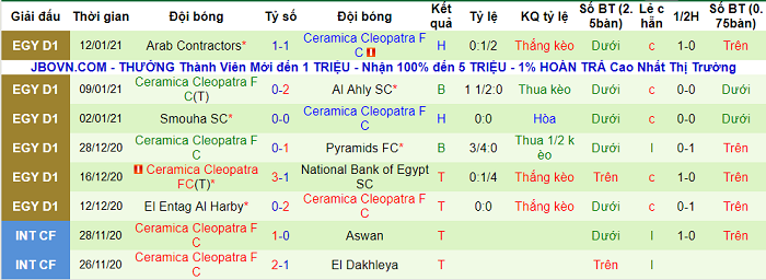 Mùa này, ENPPI đều làm ‘phật lòng’ các nhà đầu tư khi thi đấu trên sân nhà. Họ toàn thua theo tỷ lệ châu Á ở cả 3 trận sân nhà thuộc khuôn khổ giải VĐQG Ai Cập. Vì vậy, lựa chọn Ceramica Cleopatra hứa hẹn mang đến sự tin cậy hơn.