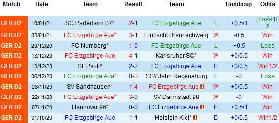 + Thống kê 10 trận gần nhất của Erzgebirge
