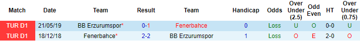 Trên sân khách 8 trận vừa qua Fenerbahce thắng 6, hòa 1 và thắng 7 trận theo kèo châu Á. Trong khi đó trên sân nhà từ đầu mùa giải, Erzurum BB không biết đến mùi chiến thắng liên tiếp 8 trận (thua 4, hòa 4 và thua 7 lần theo kèo châu Á).