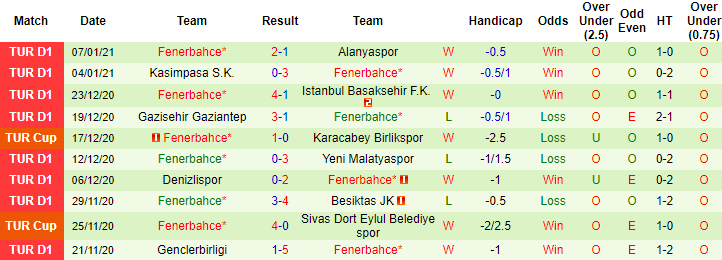 + Thống kê 10 trận gần nhất của Fenerbahce