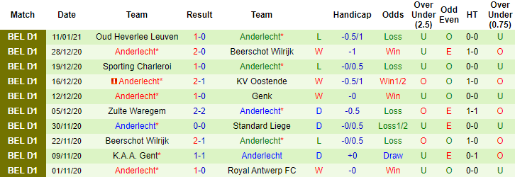 + Thống kê 10 trận gần nhất của Anderlecht