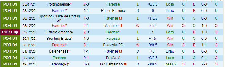 Tân binh Farense đang trên đường trở lại với giải hạng 2 Bồ Đào Nha khi liên tiếp nhận những kết quả thất vọng tại giải VĐQG Bồ Đào Nha 2020/21. Nếu tính tới trước vòng đấu cuối tuần này, họ chỉ thắng 2 trận, hòa 3 và nhận tới 7 thất bại, qua đó đứng ở vị trí cuối cùng trên BXH.
