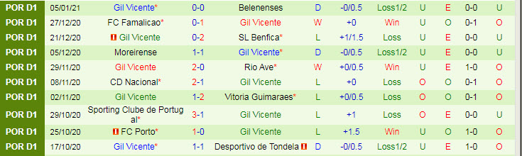 + Thống kê 10 trận gần nhất của Gil Vicente