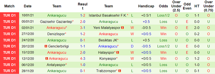 - Thống kê 10 trận gần nhất của Ankaragucu