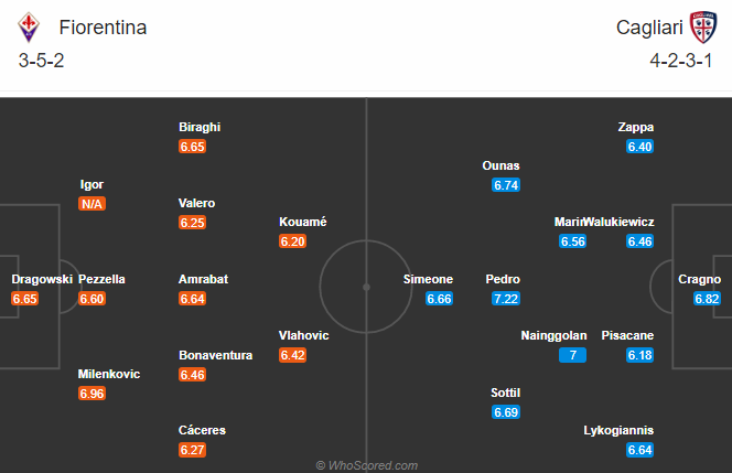 Dự đoán tỷ số Fiorentina 3-1 Cagliari