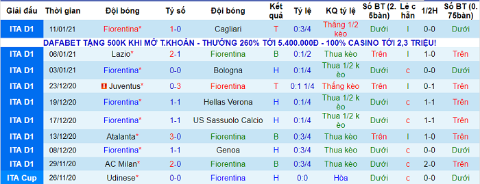- Thống kê 10 trận gần nhất của Fiorentina