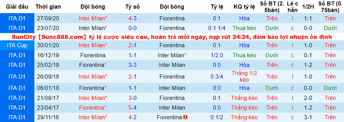 Inter Milan thắng 2/3 lần so tài gần nhất với Fiorentina. Sau hai kết quả không như ý, Nerazzurri sẽ nỗ lực đánh bại Fiorentina để làm ‘bàn đạp’ cho sự trở lại. Sự cải thiện của The Viola dưới sự dẫn dắt của Cesare Prandelli nhiều khả năng chỉ giúp cho CLB này tránh khỏi một trận thua keo kiểu ‘muối mặt’.