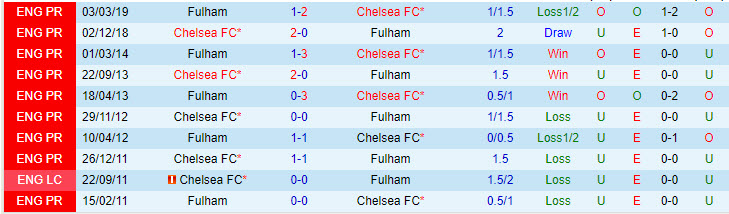 Phong độ và thống kê đối đầu Fulham - Chelsea gần đây: