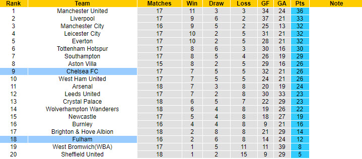 Nhắc lại, Chelsea đang sa lầy tại giải đấu số 1 xứ sở sương mù khi thua 2 và chỉ hoà 1 ở 3 lượt trận gần đây. Tính từ đầu mùa tới giờ, đội bóng London thắng 7, hoà 5 và thua 5 trận sau 17 trận đã đá, qua đó đứng ở vị trí thứ 9 trên BXH.