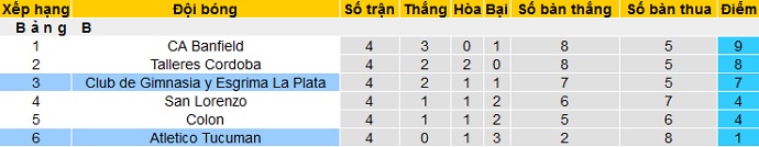 Trong khi đó Tucumán là đội bóng đang đứng bét bảng B khi mới chỉ có được 1 điểm duy nhất sau 4 vòng đấu. Hiện tại Tucumán đang kém hai đội bóng xếp ngay trên 3 điểm nhưng hầu như cũng không còn khả năng cạnh tranh khi thua kém quá nhiều về hiệu số bàn thắng.