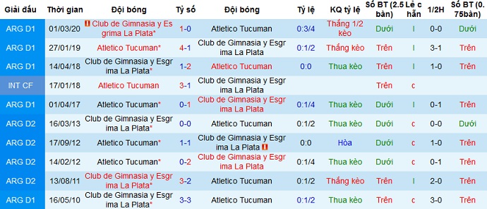 + Lịch sử đối đầu Gimnasia vs Tucumán