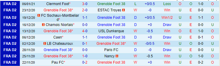 + Thống kê 10 trận gần nhất của Grenoble