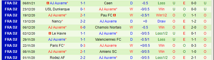 + Thống kê 10 trận gần nhất của Auxerre
