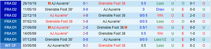 Phong độ và thống kê đối đầu Grenoble - Auxerre gần đây: