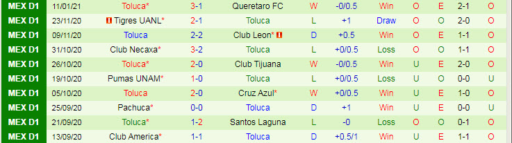 + Thống kê 10 trận gần nhất của Deportivo Toluca