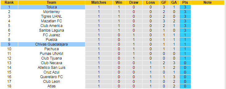 Rạng sáng mai, đội bóng của HLV Vucetich trở về sân nhà để tiếp đón đối thủ đáng gờm Deportivo Toluca. Vẫn biết đây là 90 phút khó khăn song với lợi thế được chơi trên sân nhà, Guadalajara Chivas tự tin hướng tới một kết quả trọn vẹn 3 điểm.