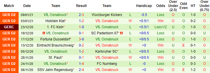+ Thống kê 10 trận gần nhất của Osnabruck