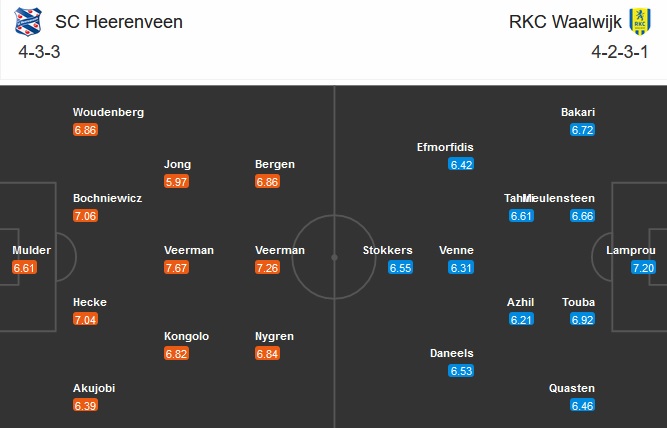 Đội hình dự kiến Heerenveen vs Waalwijk: