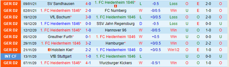 + Thống kê 10 trận gần nhất của Heidenheim
