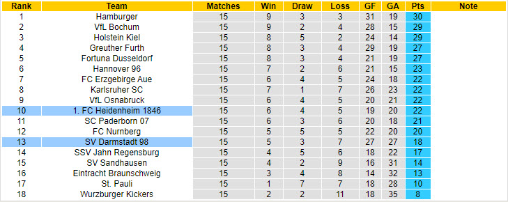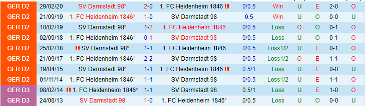 Phong độ và thống kê đối đầu Heidenheim vs Darmstadt gần đây: