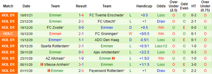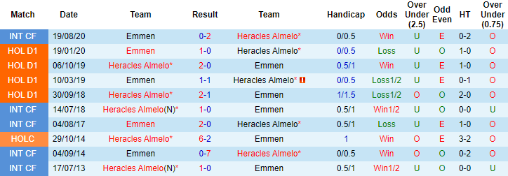 Heracles Almelo đang bị bắt bài trên sân nhà, 3 trận tiếp khách gần đây họ toàn thua, thủng lưới 6 lần. Bên phía đối diện, Emmen vẫn ít nhiều tạo được sự tin tưởng nơi người hâm mộ bằng thành tích thắng kèo 5 trên 7 trận sân khách gần đây.