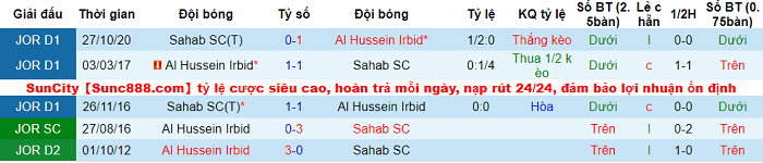 Cả 3 màn so tài gần nhất giữa Hussein Irbid và Sahab Club đều không xuất hiện quá 2 pha lập công. 5/7 trận sân nhà vừa qua của Hussein Irbid thuộc khuôn khổ giải VĐQG Jordan cũng có kết cục tương tự. Vì vậy, Hussein Irbid và Sahab Club khó tạo nên một ‘cơn mưa bàn thắng’.