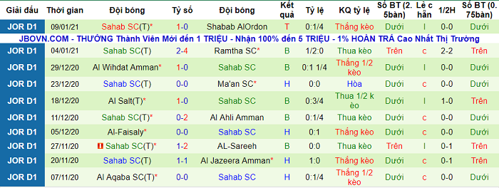 Trong khi đó, Sahab Club cũng không có được thành tích quá ấn tượng trên sân khách. Họ không thắng 5 trận sân khách vừa qua thuộc khuôn khổ giải VĐQG Jordan. Trong chuỗi 5 trận không thắng vừa rồi trên sân khách, Sahab Club thu về 3 kết quả hòa và nhận 2 thất bại.