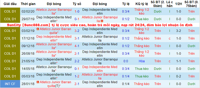 Những trận đấu gần đây giữa Independiente Medillin và Junior Barranquilla thường ít xuất hiện bàn thắng. Hai lần chạm trán gần nhất giữa họ thậm chí không chứng kiến quá 1 pha lập công.