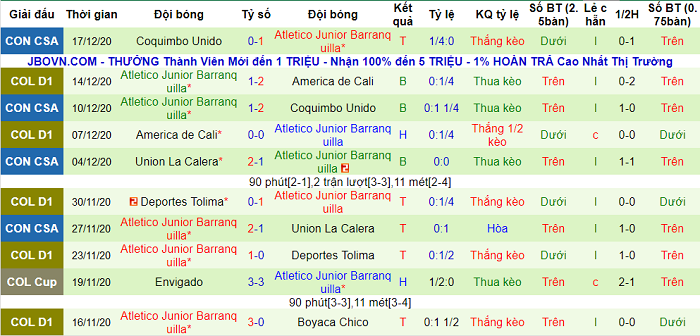 - Thống kê 10 trận gần nhất của Junior Barranquilla