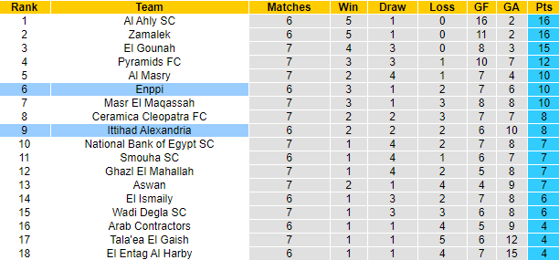 Ittihad Alexandria được coi là đối thủ yêu thích của ENPPI Cairo. Trong vòng 29 lần chạm trán Ittihad Alexandria trước đây tính trên mọi đấu trường, ENPPI Cairo thắng 15, hòa 9 và chỉ để thua 5 trận. 4 lần làm khách gần đây trên sân của Ittihad Alexandria, ENPPI Cairo bất bại với 3 chiến thắng và 1 trận hòa, thắng cả 4 trận theo kèo châu Á.