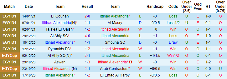 + Thống kê 10 trận gần nhất của Ittihad Alexandria
