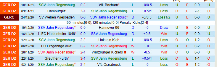 + Thống kê 10 trận gần nhất của Jahn Regensburg
