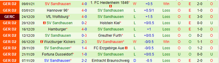 + Thống kê 10 trận gần nhất của Sandhausen