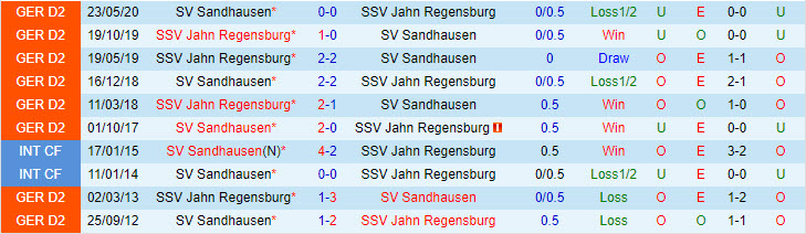 Phong độ và thống kê đối đầu Jahn Regensburg - Sandhausen gần đây: